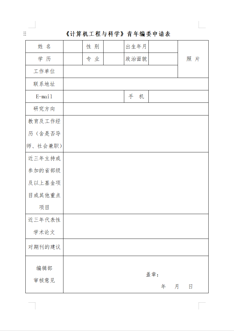 为进一步加速提升《计算机工程与科学》的学术影响力,吸引更多优秀青年学者关注与支持期刊的快速发展,为编委会培养后备力量,现公开招聘青年编委,本次招聘任期3年。